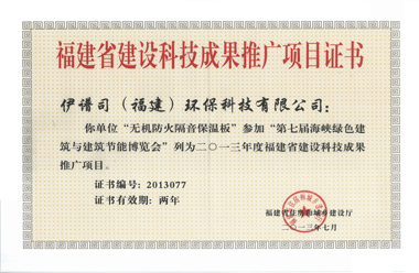 福建省建設(shè)科技成果推廣項(xiàng)目證書
