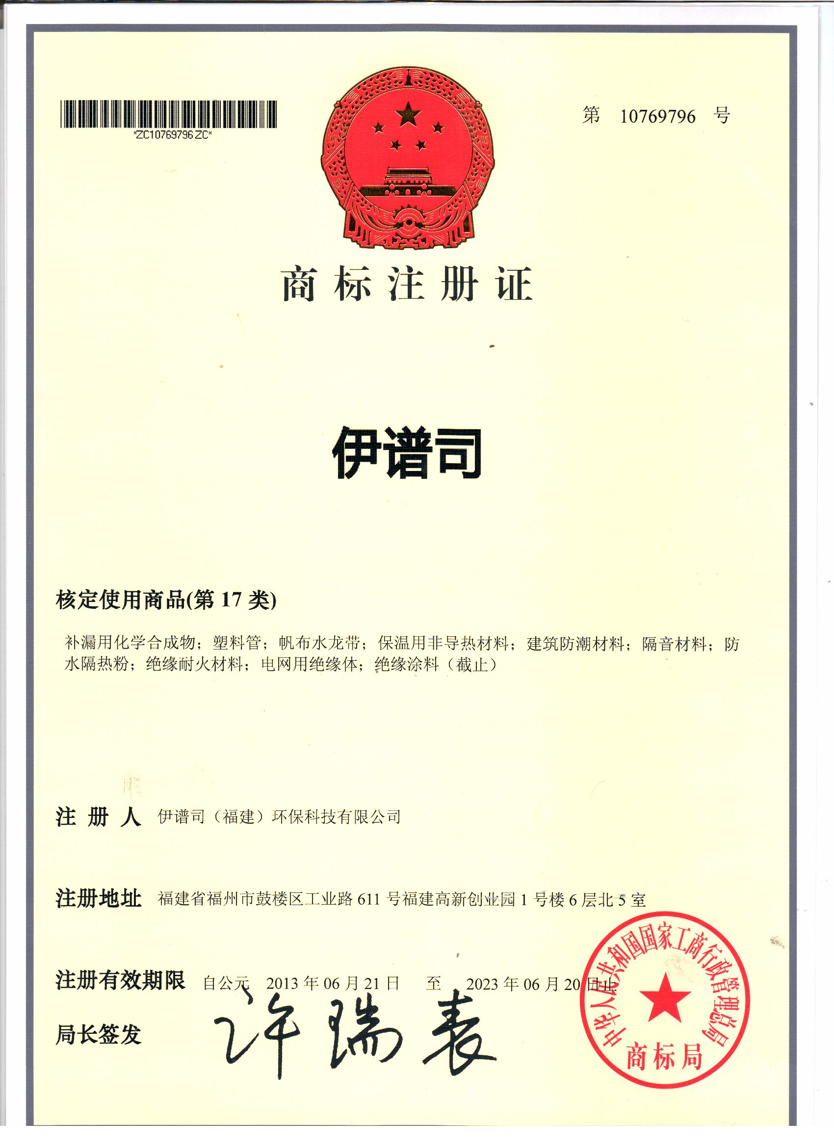 商標(biāo)注冊(cè)證書
