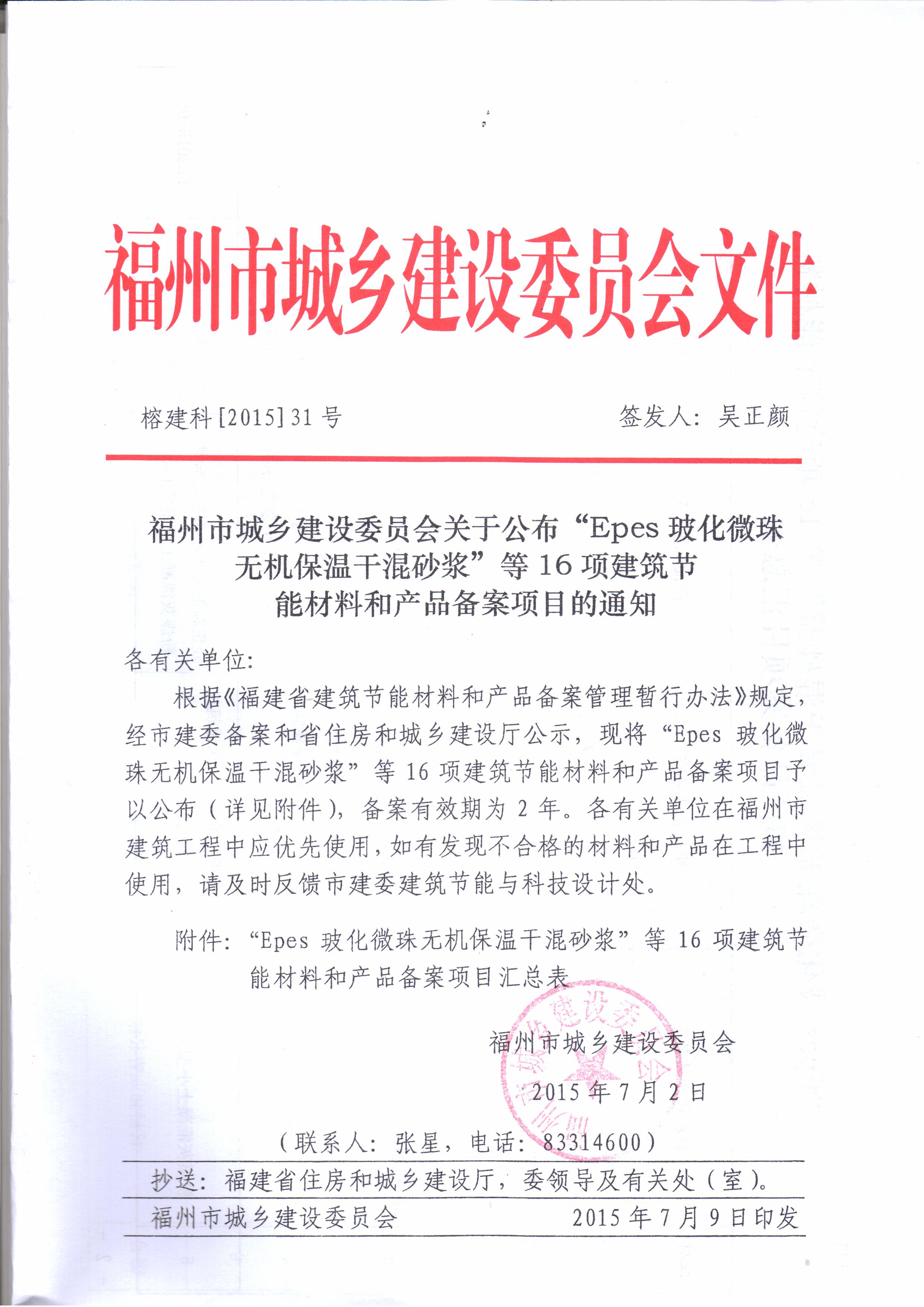 福建省建筑節(jié)能材料和產(chǎn)品備案登記表(福州市城鄉(xiāng)建設(shè)委員會(huì))